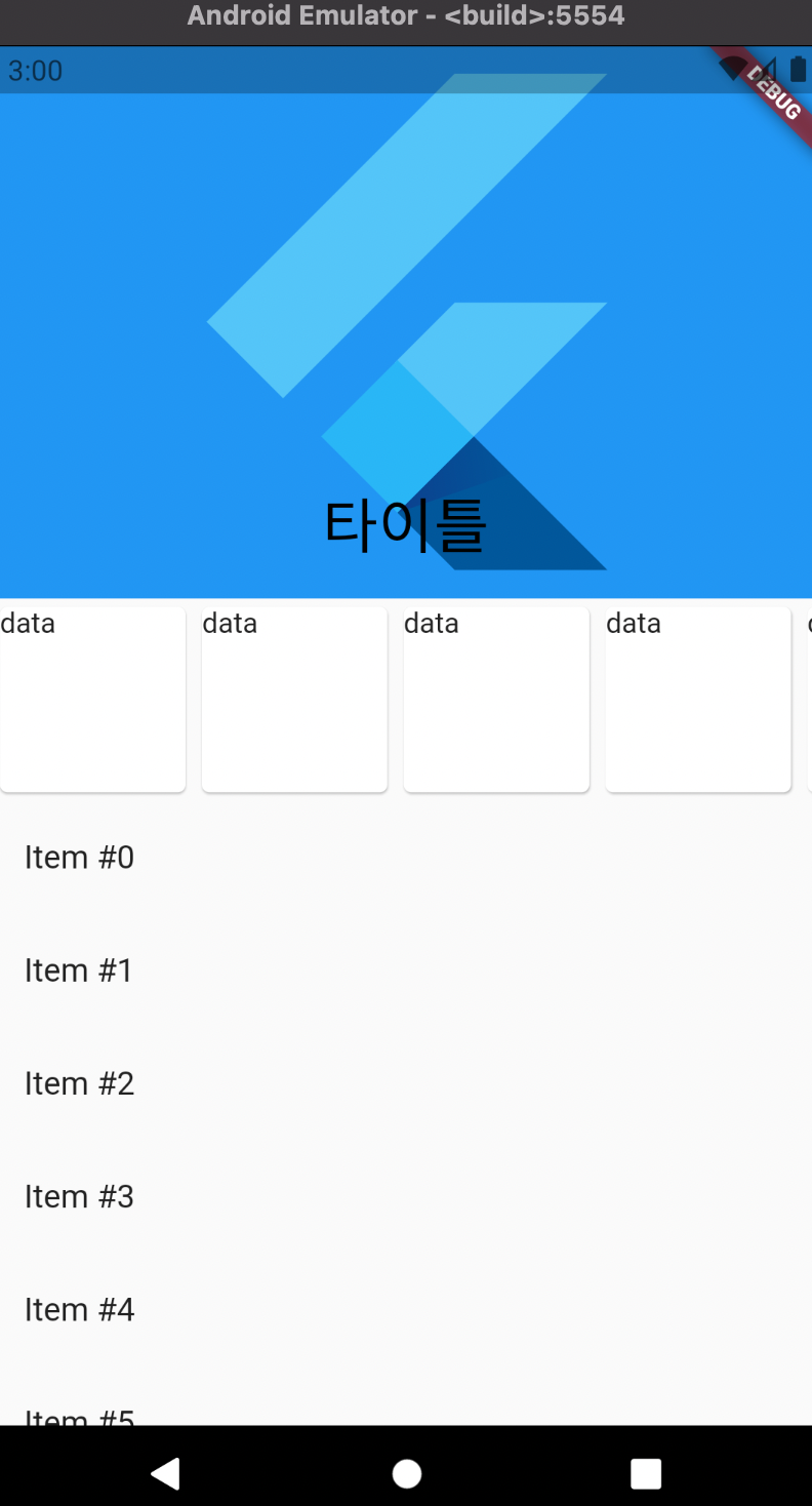 마찬가지로 만약 SliverAppBar와 SliverList 사이에 Text를 넣고 싶을 때도 SliverToBoxAdapter 를이용하여 넣을 수도 있다.